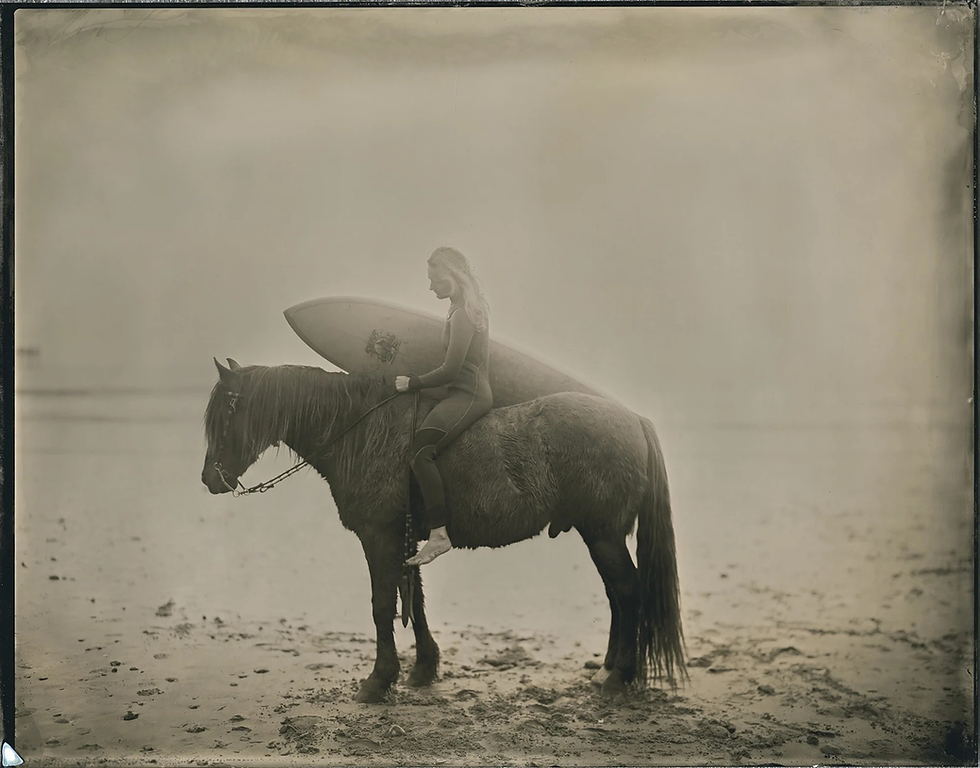 Sternbach’s tintypes introduce a historical counterpoint to the paintings. Using a 19th-century photographic process, her works—such as Afternoon at Orella Ranch and California State of Mind—collapse time, linking contemporary riders and landscapes with the legacy of the American West. These pieces carry both conceptual weight and strong institutional recognition, with pricing between $10,000–$17,000.
